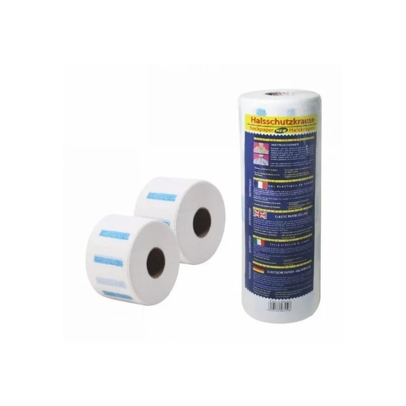 Bardzo praktyczne i przydatne w pracy każdego fryzjera jednorazowe kołnierzyki samoprzylepne wykonane z elastycznej i wytrzymałej bibuły higienicznej.
